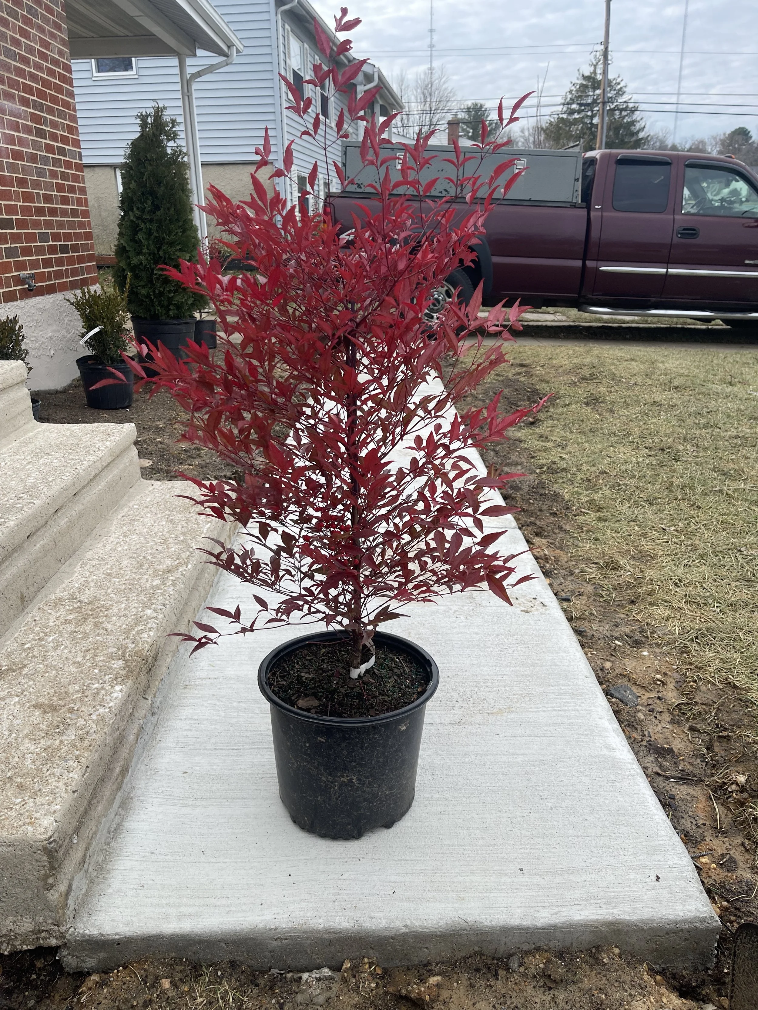 Nandina domestica is a low-maintenance shrub with vibrant red foliage in fall and winter, white spring flowers, and red berries. It thrives in full sun to partial shade, adding year-round color to landscapes.